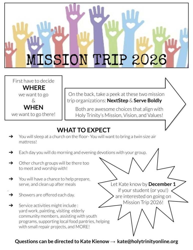 There’s something for everyone at Holy Trinity! Check out the options below and complete the registration link above.